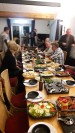 Met onze groep van 16 volwassenen hadden we geopteerd voor een formule 'All-in' waarbij Ria, de accommodatieverantwoordelijke, in stond voor de volledige catering. En dat verliep perfect. Ria zorgde voor een stevig ontbijt, waarmee we ook onze picknick konden samenstellen. Voor het avondmaal werd een cateringbedrijf ingehuurd dat zorgde voor een 3-gangenmenu met 2 keuzemenu's voor de vleeseters, een verrassingsmenu voor de vegetariers en iemand met een bepaalde allergie kreeg aangepaste maaltijden. En dat voor een heel acceptabele prijs. Ria zorgde ook voor alle drankjes, de wijn en een abdijbier dat ze speciaal ophaalde bij de naburige abdij.
